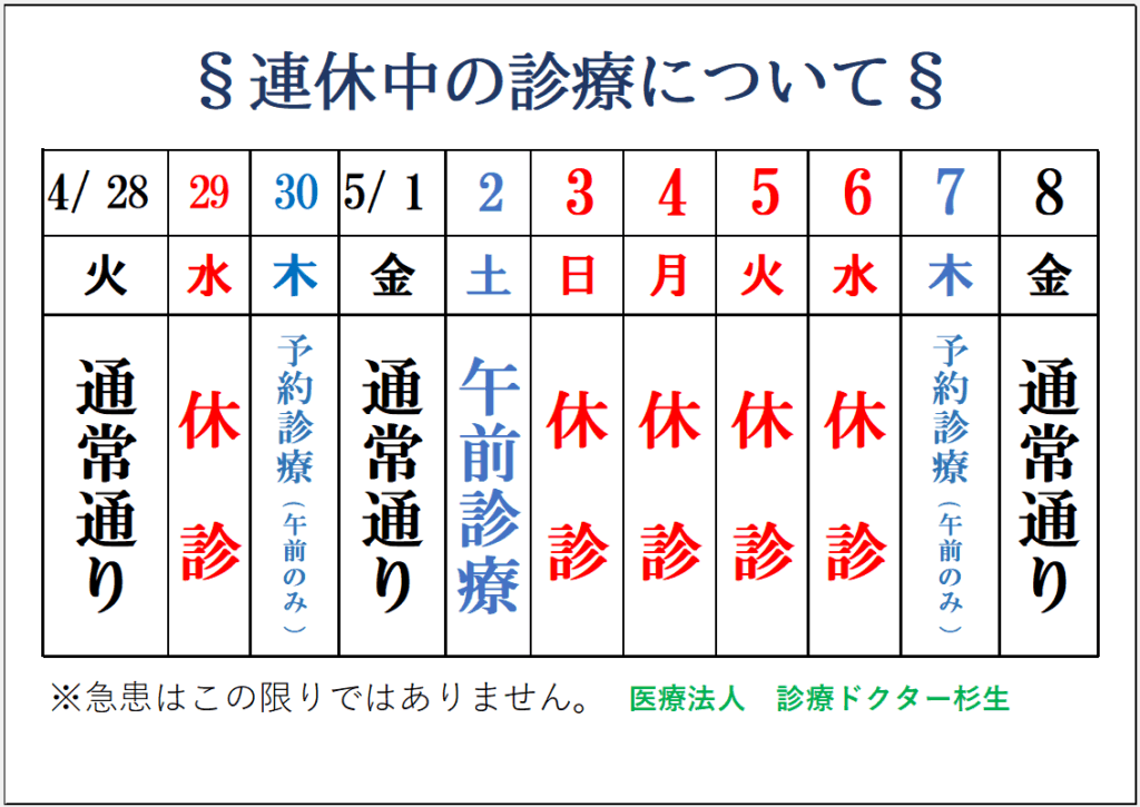 R8年 ゴールデンウィーク中の診療について